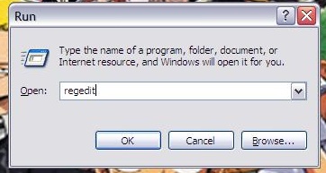(Caranya : Start - RUN - ketik: regedit) (atau tekan tombol logo WINDOWS + R, ketik: regedit)